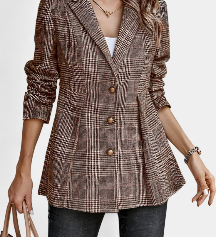 CALICO | Blazer Peplum a Cuadros con Solapa de Muesca