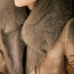 Este lujoso abrigo de piel de cordero para mujer combina comodidad, estilo y calidez.