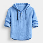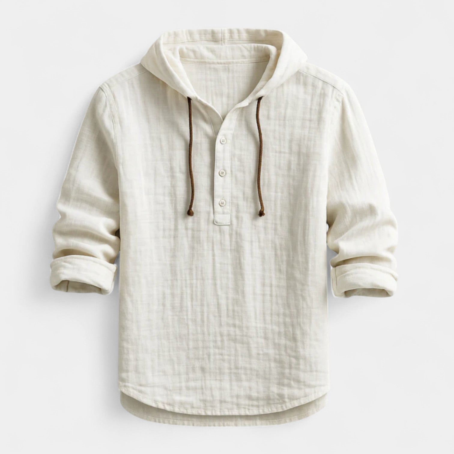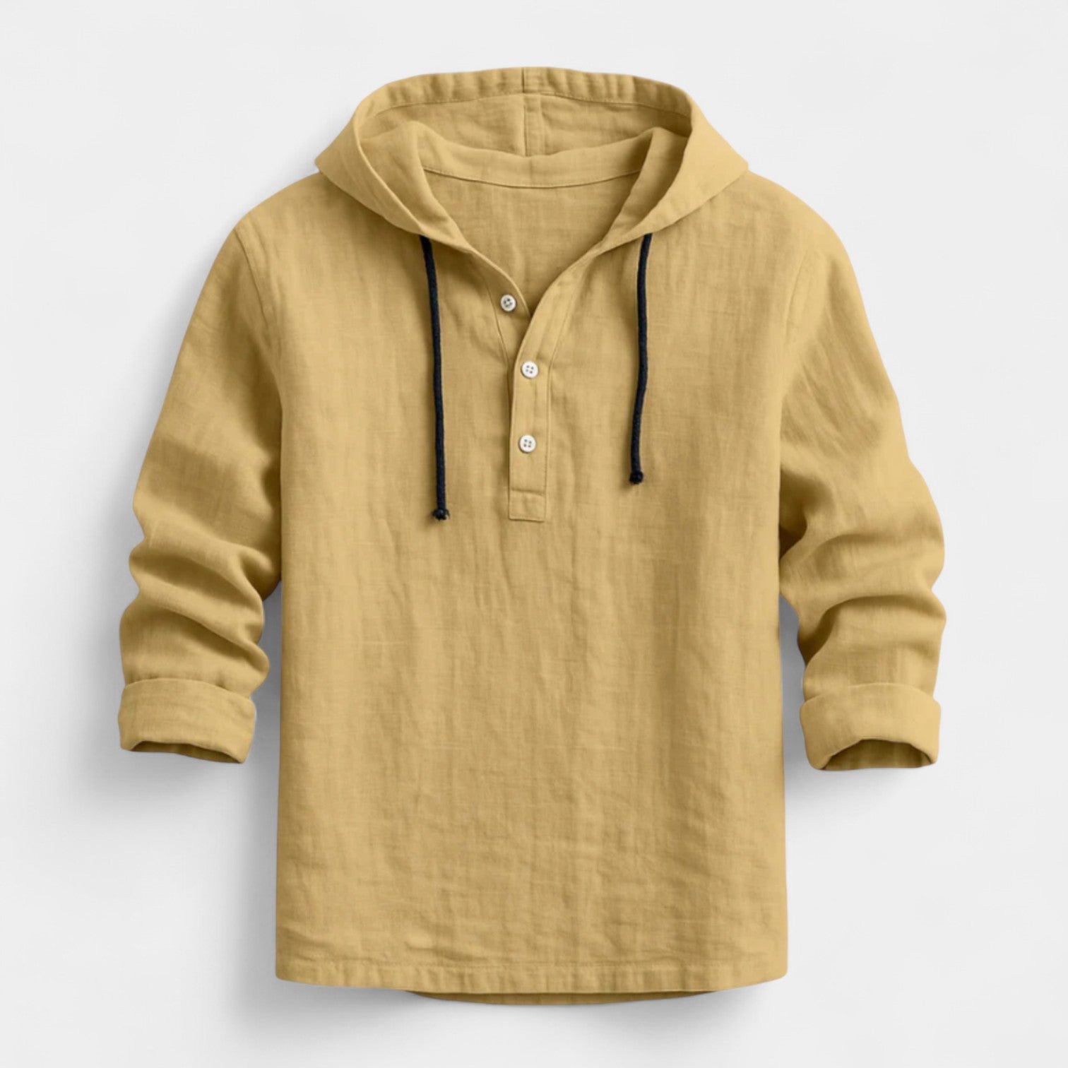 Vyrobena z kvalitního lnu, košile Adam spojuje pohodlí a nadčasový styl v moderním střihu. Její prodyšnost a jemný dotek na kůži zajišťují maximální komfort po celý den – ideální volba pro každé roční období. Nastavitelná kapuce dodává moderní nádech a praktičnost, díky čemuž se tento kousek hodí jak pro volný čas, tak i pro ležérní elegantní styl.