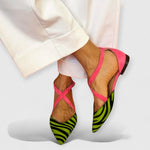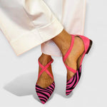 Descubre nuestras Sandalias Fenna, una fusión impresionante de un vibrante patrón de cebra y atrevido fucsia, diseñadas para quienes aman destacar con estilo. Este bestseller es perfecto para añadir un toque de glamour a cualquier atuendo.