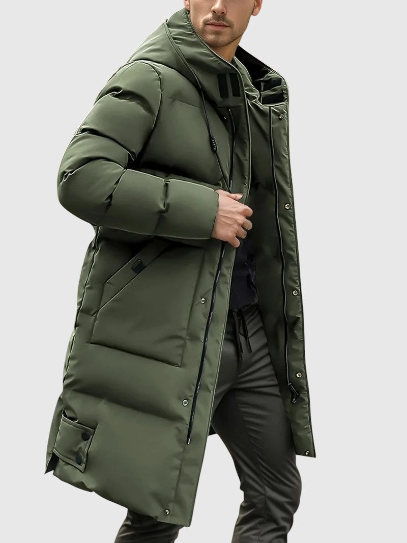 Jan – Prošívaný dlouhý kabát s kapucí