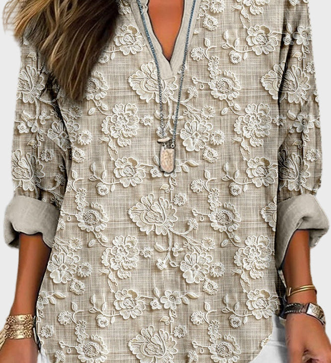 LAURA | Blusa Casual con Mangas Largas y Estampado Elegante