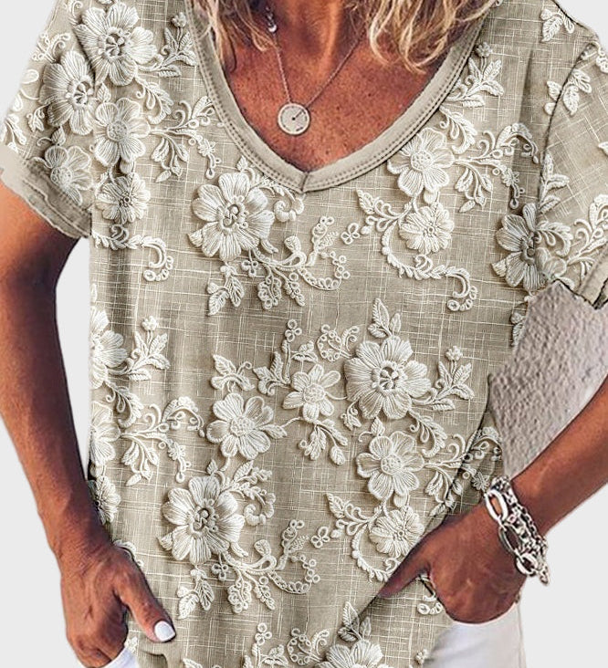 AMBAR | Blusa Vintage con Estampado de Hojas