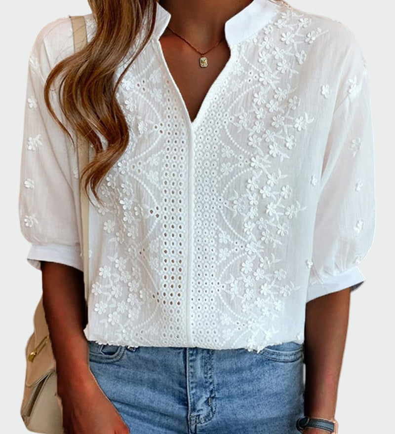 LACEY™ | Blusa con detalles de encaje y mangas abullonadas