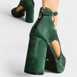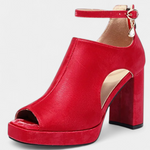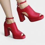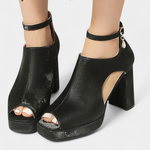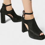 - Tacón grueso que ofrece soporte y comodidad duradera
