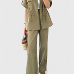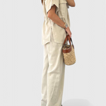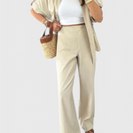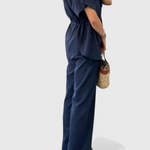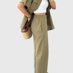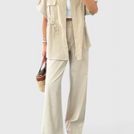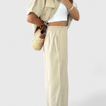 Diseñado para moverse contigo, el conjunto Lani aporta un toque de elegancia a tu vestuario diario. Con su diseño de camisa desenfadada y pantalones rectos fluidos, este conjunto ligero ofrece comodidad transpirable sin sacrificar el estilo. Desde citas de brunch hasta días de descanso, es tu opción para una sofisticación discreta.