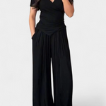 - Pantalones de pierna ancha que ofrecen comodidad sin esfuerzo