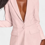 - Blazer de un solo botón con escote en V profundo y hombros estructurados