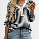 Un esencial versátil que une comodidad y estilo casual. Rumer se distingue por su textura acanalada que aporta sutil carácter y un escote en V con botones que realza la silueta con modernidad. Diseñado para acompañar looks transicionales, se adapta con facilidad a distintas temporadas y combinaciones.