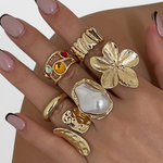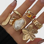 Una fusión de diseño fluido y delicadas embellishments, este anillo en forma abierta captura la belleza de la naturaleza en movimiento. Con sus curvas de metal fundido, acentos de rhinestones y una suave perla simulada, aporta una calidad artística y onírica a tu estilo diario.