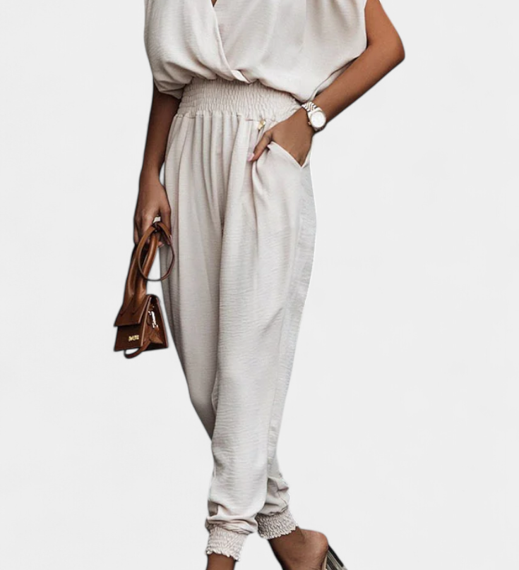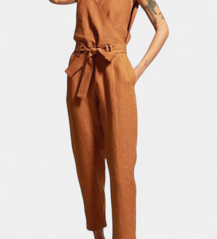 MAGGIE MONO™ | Mono Sin Mangas con Escote en V y Cintura Cruzada en Algodón