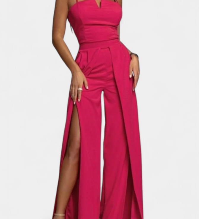 PRESCILLIA™ | Mono con Tirantes de Espagueti y Pierna con Abertura