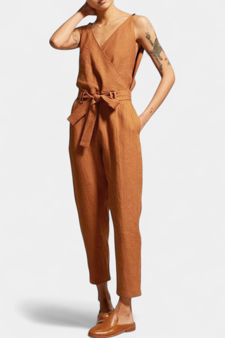 MAGGIE MONO™ | Mono Sin Mangas con Escote en V y Cintura Cruzada en Algodón
