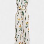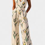 Ligereza veraniega con una silueta que combina frescura y elegancia. El mono Slara destaca por su escote en V profundo y estampado blanco limpio, ideal para días soleados con estilo relajado. Su corte suelto y tejido fluido permiten moverse con libertad, mientras el cinturón define la figura con discreta sofisticación.