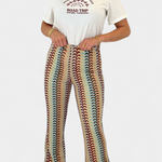 Audaz, cómodo y con mucho estilo. El pantalón Carlie destaca por su estampado ondulado multicolor y su tejido de spandex elástico que se adapta a tu figura con suavidad. Su corte acampanado y cintura alta alargan visualmente las piernas, creando un look moderno con guiños vintage. Ideal para elevar un outfit casual con personalidad.