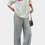 ELVA | Pantalones de Lentejuelas de Cintura Alta y Corte Holgado