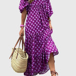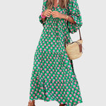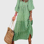 Descubre el encanto libre y elegante con el Vestido Maxi Dawn Elegante — donde los audaces estampados bohemios se encuentran con la sofisticación. Con su silueta fluida y diseño destacado, este vestido es tu compañero perfecto para días soleados y noches frescas.
