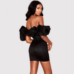 El Vestido MINI - Flor de Medianoche de LA VENECIA es una obra maestra de sofisticación juguetona. Confeccionado en satén fluido y adornado con volantes delicados, este diseño sin tirantes realza tu silueta mientras acariza tu piel con su tacto luxuoso. El escote palabra de honor enmarca tus hombros y clavículas con una sensualidad discreta, creando el lienzo perfecto para tus joyas más preciadas.