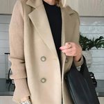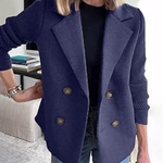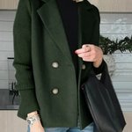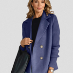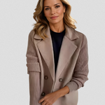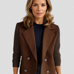 Diseñado con un frente estructurado de doble botonadura y suaves mangas de punto, ofrece libertad de movimiento sin sacrificar la elegancia. Su tejido de peso medio proporciona un calor suave, perfecto para días más frescos cuando deseas lucir bien sin sentirte restringida.