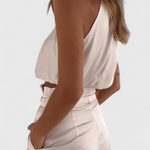 Refinado y cómodo, el Conjunto Helira combina elegancia atemporal con ligereza veraniega. Diseñado en una tela suave como la seda, su top sin mangas y pantalones amplios se adaptan con facilidad a cualquier ocasión, desde momentos de descanso hasta salidas elegantes bajo el sol.