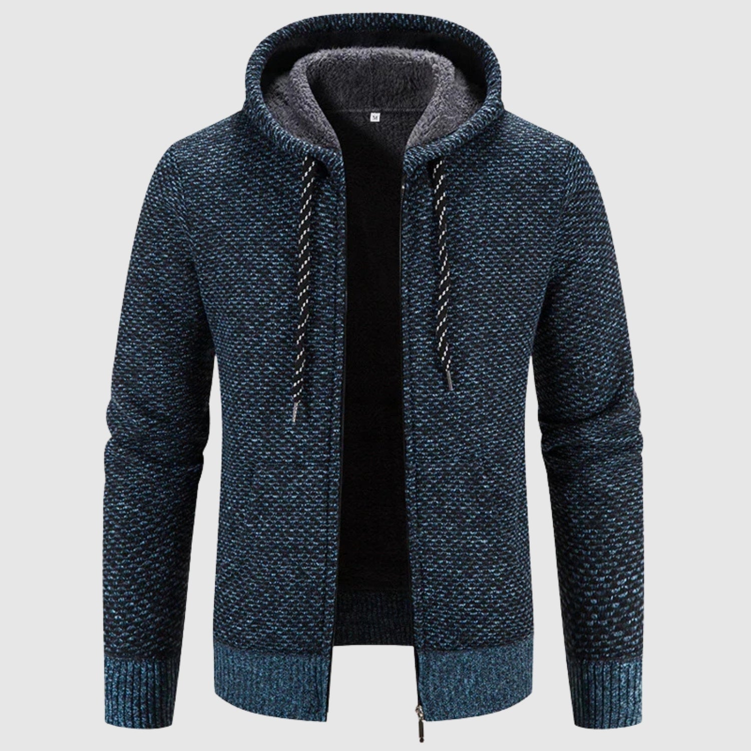 Tento svetr kombinuje teplo kabátu s pohodlím mikiny. Jeho silná a měkká tkanina poskytuje účinnou izolaci proti chladu, zatímco design s kapucí a zipem z něj dělá univerzální a moderní kousek. Ideální pro každodenní nošení, aniž by ztratil na eleganci a teple.